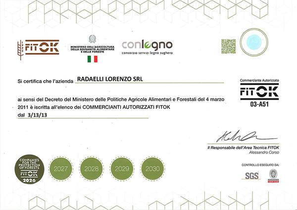La garanzia dei prodotti è il risultato dato dall'impegno costante intrapreso dall'azienda nel rispondere ai requisiti richiesti e verificati di enti accreditati, quali FIT OK, CON LEGNO e RILEGNO che attestano il percorso dell'azienda verso un futuro più responsabile e sostenibile.