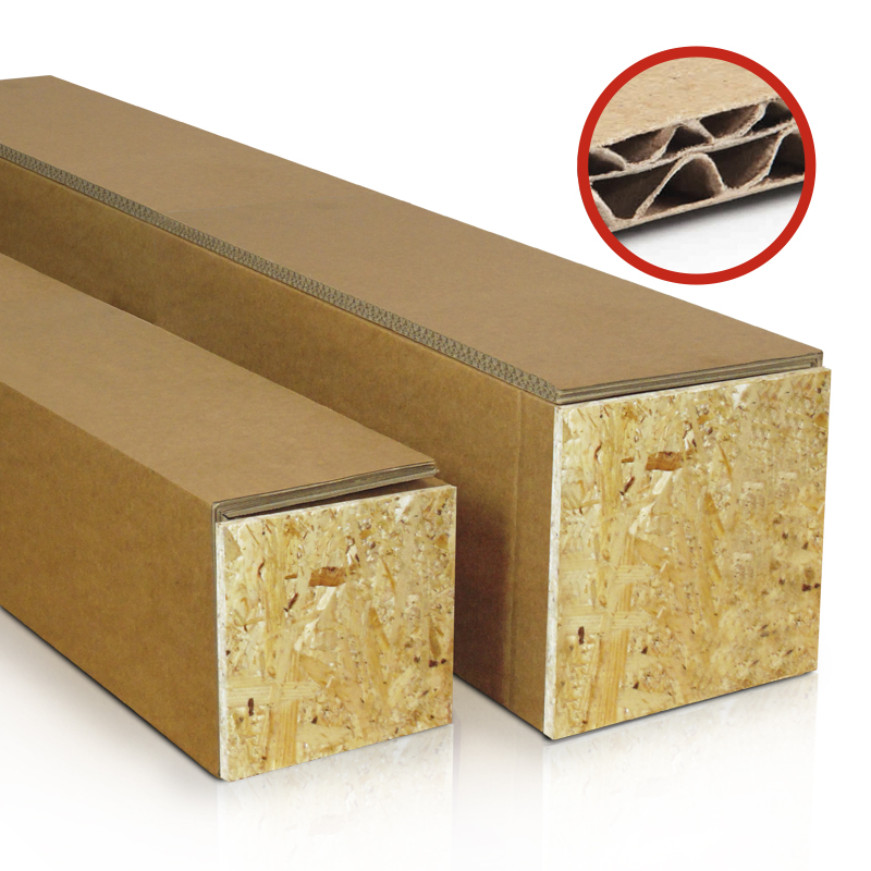 Fogli in cartine con smussi a V, pieghevoli, per realizzare tubolari di sezione quadrata a spigolo vivo. Applicando poi i relativi tappi in o.s.b. tramite greffettatrice legno - cartone o viti, si creano contenitori per oggetti come tubi, sonde, condotti, barre, ecc. Disponibili in cartone 2 fogli avana, 2 onde bianco e 3 onte antiumidità avana, possono essere tagliati a seconda delle esigenze.