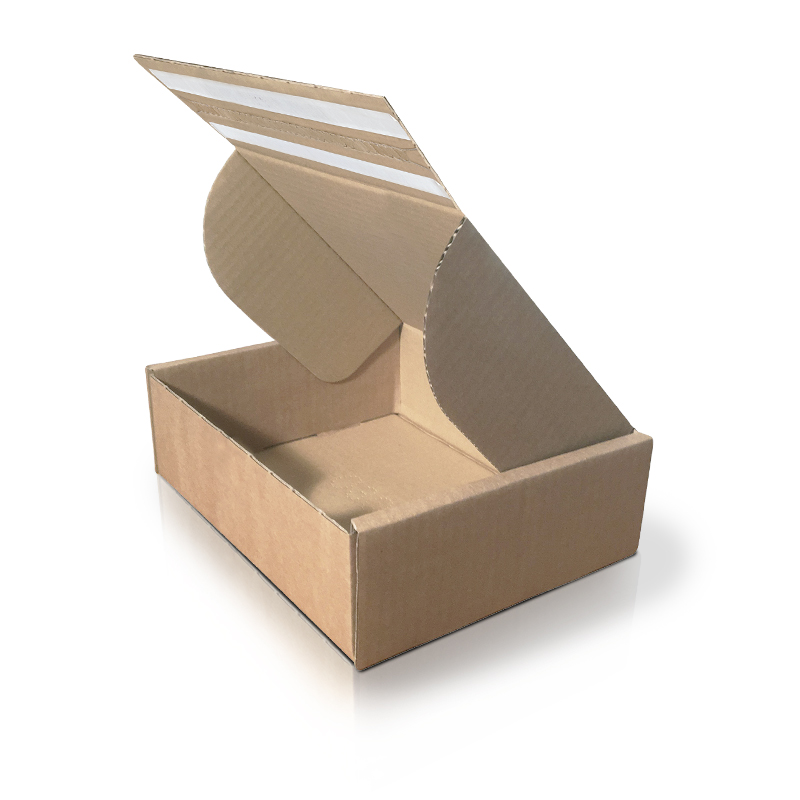 Scatole automontanti in cartone 1 onda avana con coperchio e chiusura adesiva doppia e apertura facilitata. Ideali nel settore e-commerce per la spedizione di prodotti di medio-piccole dimensioni. I lati ripiegati internamente formano una doppia parete che garantisce maggiore robustezza e protezione per i prodotti.