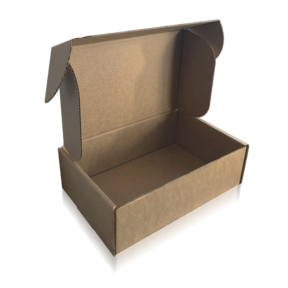 Scatole automontanti in cartone 1 onda, avana o bianco, facili da montare e rapide da chiudere grazie alla chiusura ad incastro. Le pareti laterali, ripiegate all'interno nell'assemblaggio, ne raddoppiano la robustezza.