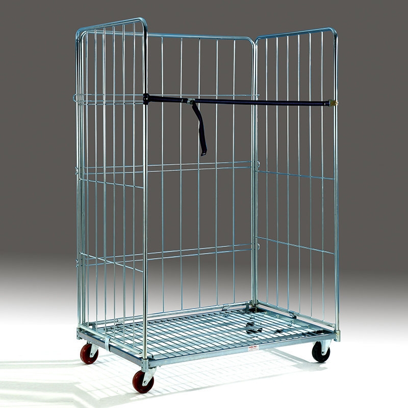 Il roll container scaffale è il contenitore su ruote, ideale per il trasporto delle merci dai magazzini centrali a quelli periferici e nel settore lavanderia, per il trasporto e il ritiro della biancheria. Realizzato con pareti in tubo tondo, agganciate tramite delle molle di fissaggio alla base, può essere facilmente smontato per un rapido immagazzinamento con recupero dello spazio durante i trasporti di ritorno a vuoto. Le dimensioni unificate al pallet lo rendono capiente ed è ottimizzato per la spedizione all'interno del camion.