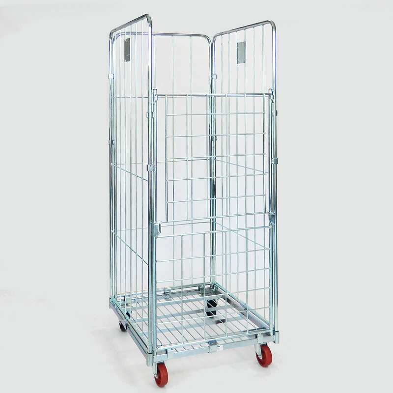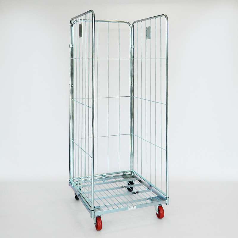 Il roll container è il contenitore su ruote, ideale per il trasporto merci dai magazzini centrali a quelli periferici. Realizzato con pareti in tubo tondo, agganciate tramite delle molle di fissaggio alla base che possono essere facilmente smontate per un rapido immagazzinamento con recupero dello spazio durante i trasporti di ritorno a vuoto. E' utilizzato soprattutto per la movimentazione dei prodotti alimentari dai centri distributivi (CEDI) ai negozi (supermercati). Le dimensioni unificate, permettono di caricare sui camion roll container affiancati a gruppi di 3. La terza e quarta parete permettono al materiale trasportato di essere contenuto in sicurezza all'interno del roll container. La quarta parete è dotata di un'anta ribaltabile per agevolare l'operazione di carico/scarico merce.